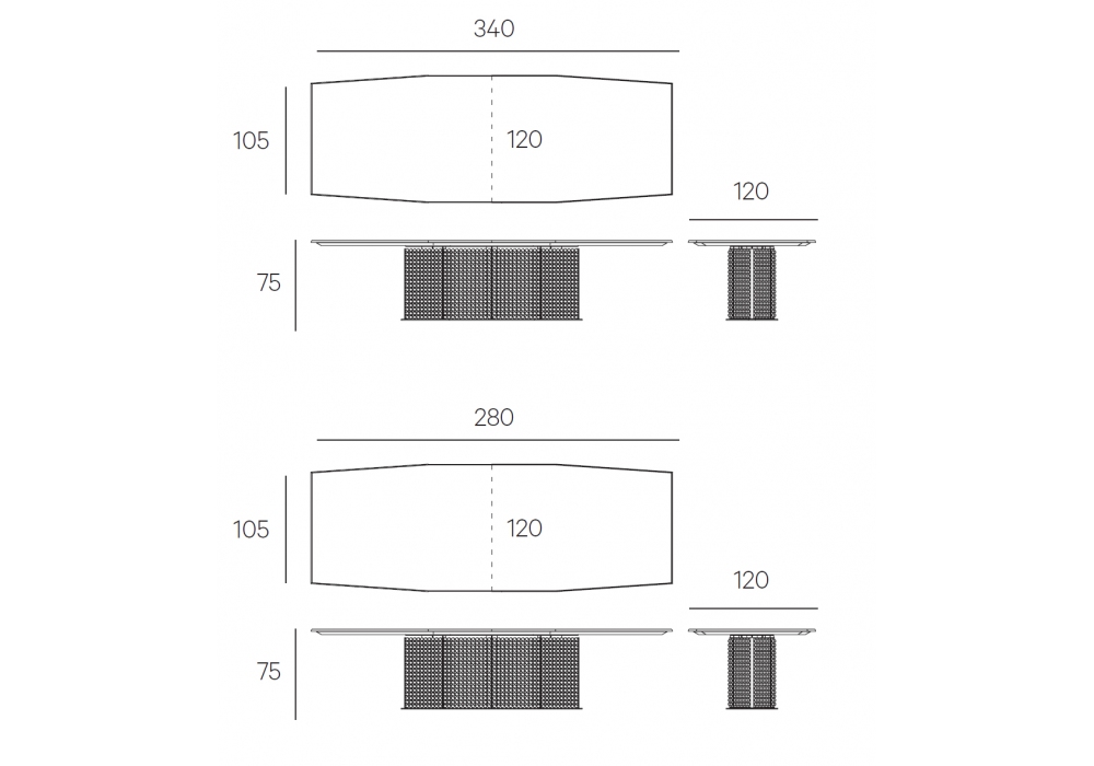 | Dimensioni | 280 x 120 x H 75 cm; 340 x 120 x H 75 cm. |