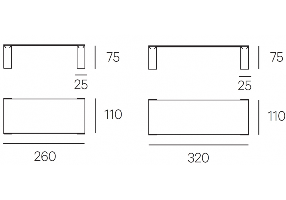 | Dimensioni | 260 x 110 x H 75 cm; 320 x 110 x H 75 cm. |