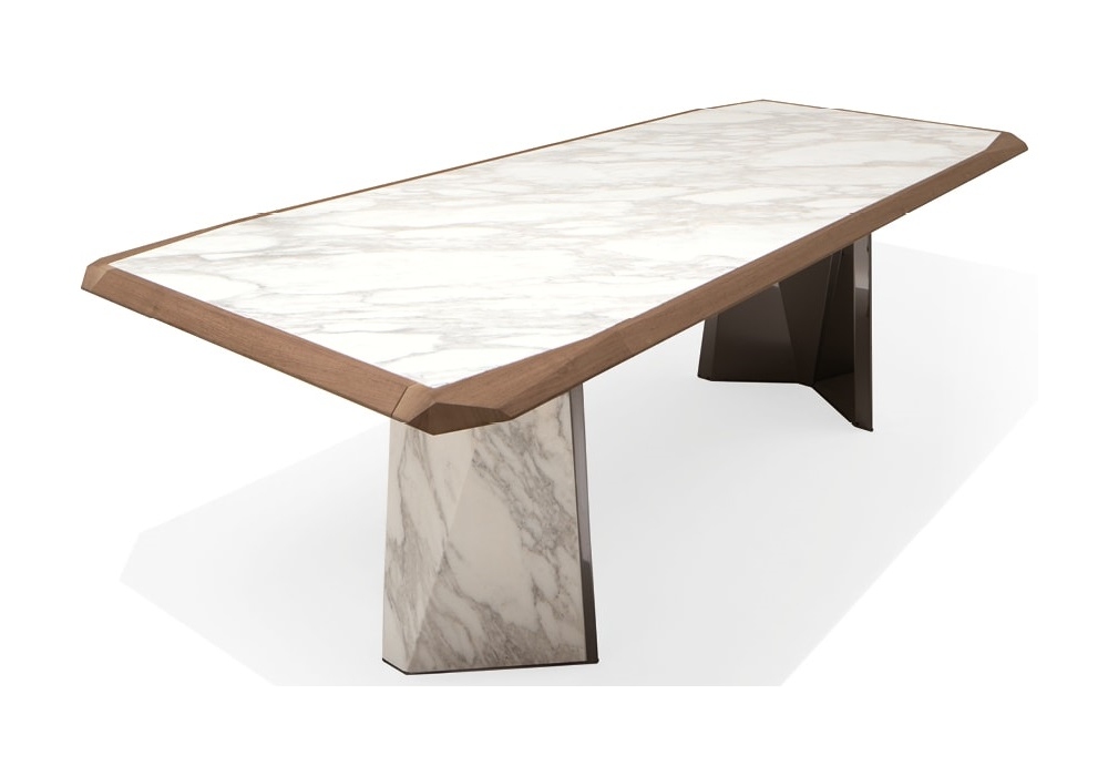 Amadeus firmato da Roberto Lazzeroni per Giorgetti è un tavolo rettangolare con il piano in alveolare di alluminio e struttura in massiccio di noce canaletto in diverse finiture. Il piano e le gambe presentano degli inserti in marmo, nella stessa finitura. Amadeus è disponibile in diverse dimensioni e modelli.