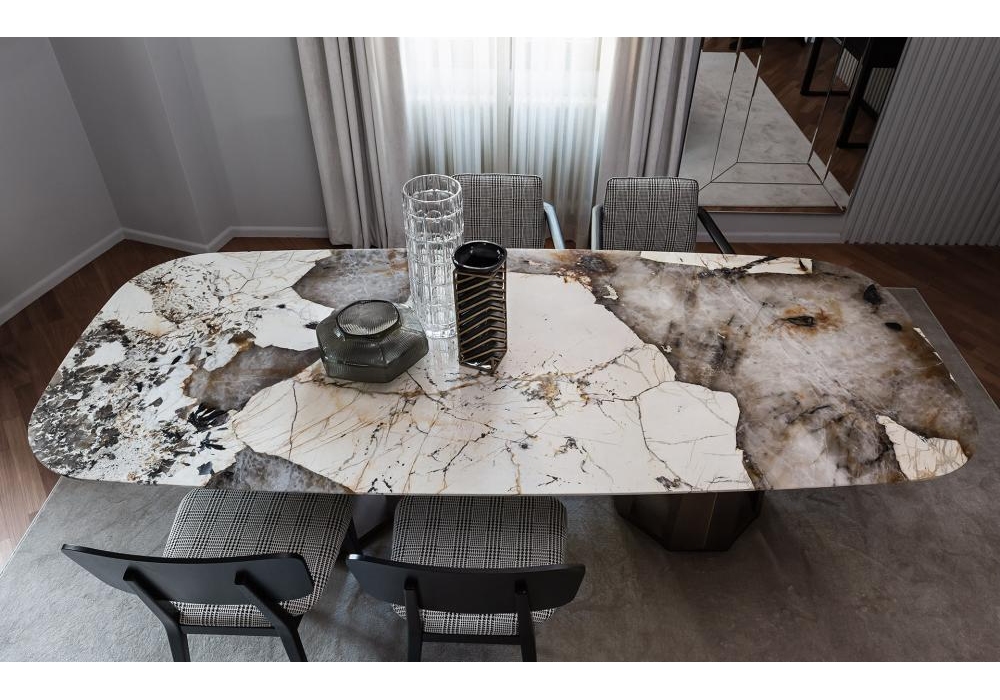 Kandinsky firmato da Massimiliano Raggi per Casamilano è un tavolo con piano in marmo o rivestito in essenza. Sottopiano e base in MDF laccato. Le imperfezioni sono dovute alla lavorazione manuale, che rende ogni pezzo unico. Disponibile in diverse dimensioni.