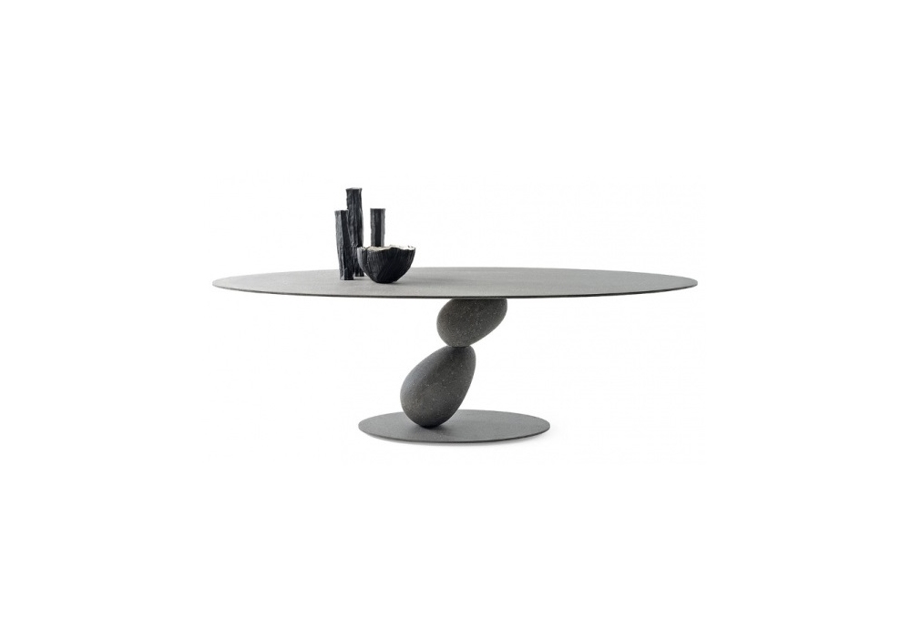 Matera firmato da Sebastiano Tosi per Mogg è un tavolo con struttura in metallo e piano in MDF, rivestito nelle finiture materiche spatolate a mano: urban gray, river stone e marmo belgian blu. Disponible in 4 dimensioni.