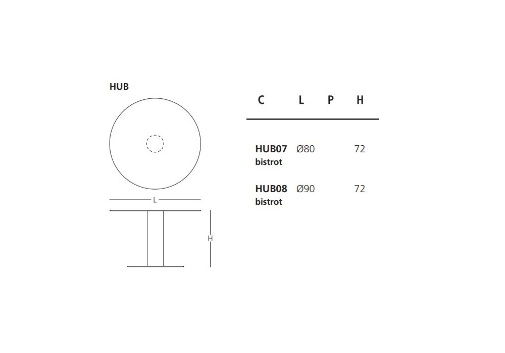 | Diametro del piano | Ø 80 cm; Ø 90 cm. |