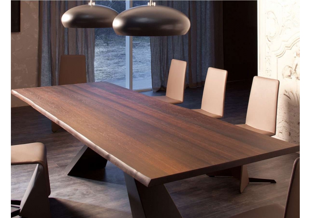 Eliot Wood firmato da Giorgio Cattelan per Cattelan Italia è un tavolo realizzato con base in acciaio e piano in legno noce canaletto o rovere. Con bordi irreglari in massello. Disponibile in 3 dimensioni.