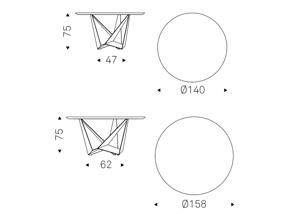 | Dimensioni | ⌀ 140 x H 75 cm; ⌀ 158 x H 75 cm. |