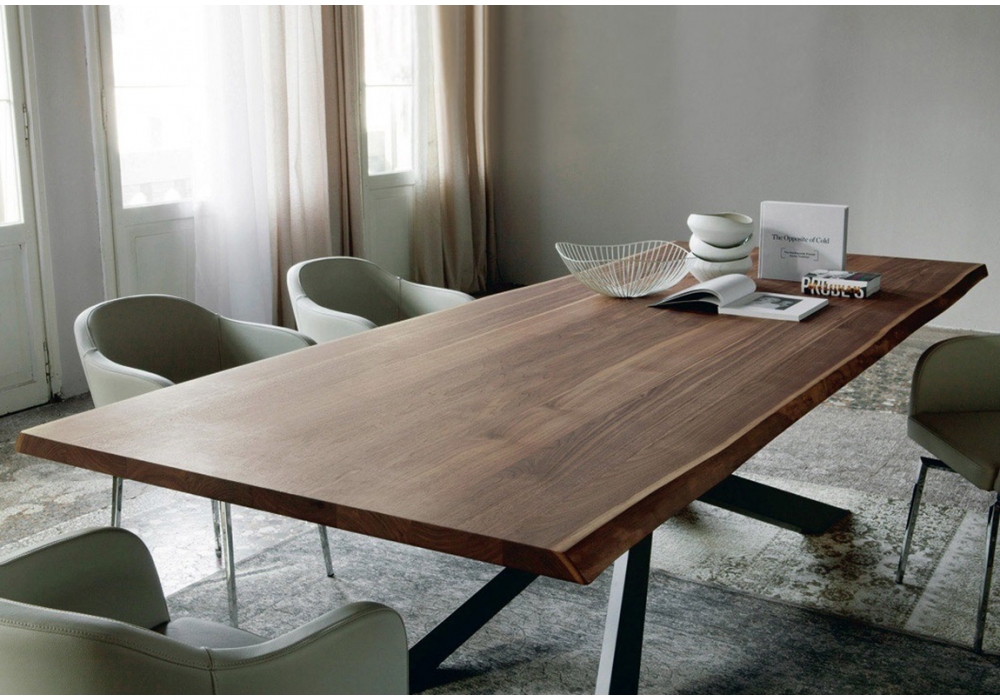 Spyder Wood firmato da Philip Jackson per Cattelan Italia è un tavolo con base in acciaio e piano in legno con bordi irregolari in legno massello. Disponibile in tre dimensioni.