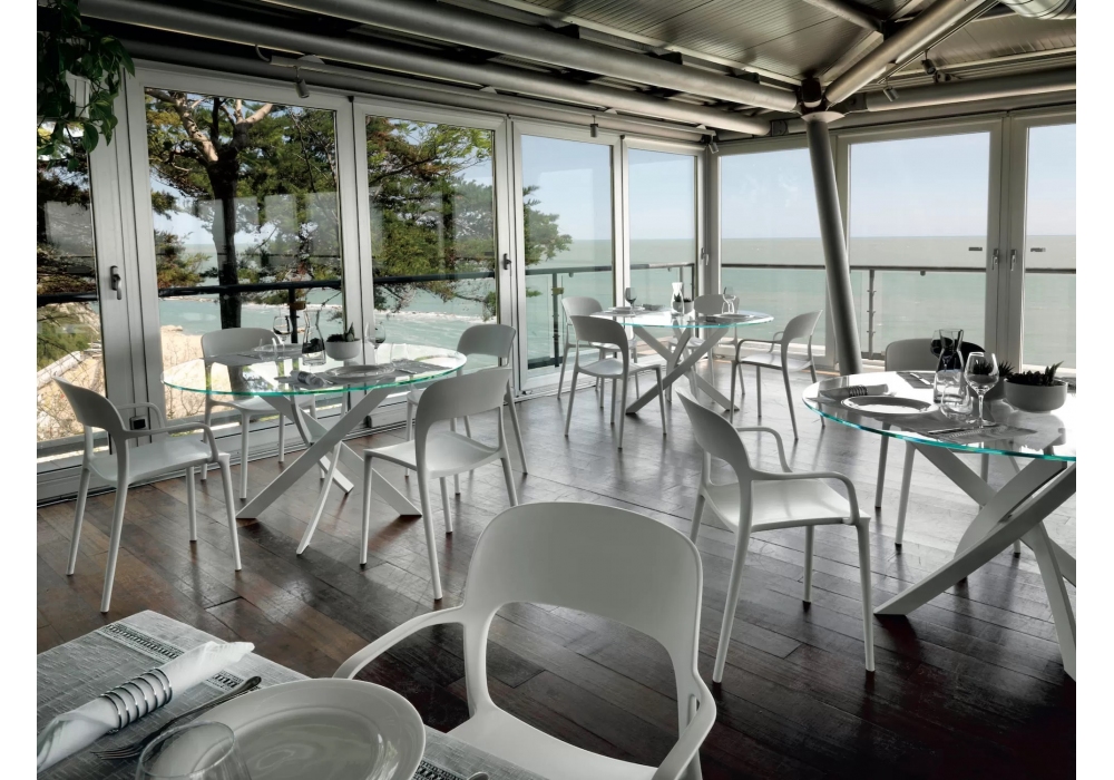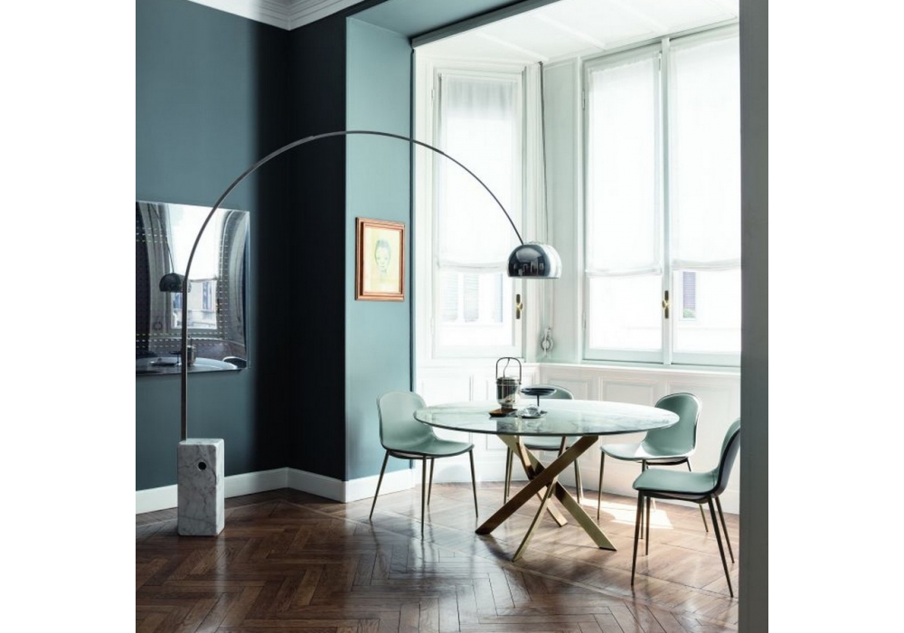 Barone firmato da Pocci & Dondoli per Bontempi è un tavolo con struttura in metallo e piano in cristallo. Disponibile in 2 versioni: rotonda da 3 dimensioni ed ellittica. Disponibile in diverse finiture.
