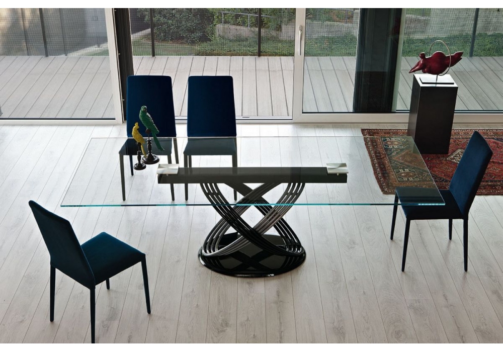 Fusion Rettangolare firmato da Pocci & Dondoli per Bontempi è un tavolo con struttura in acciaio disponibile con piano in cristallo, legno o marmo. Sono disponibili diverse finiture.