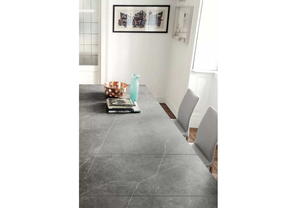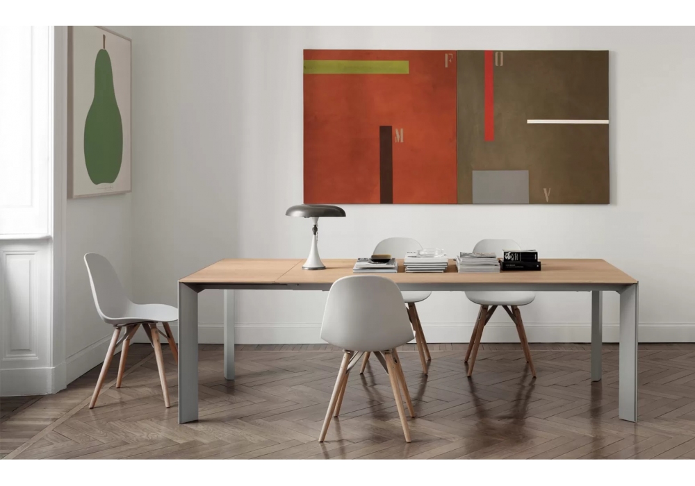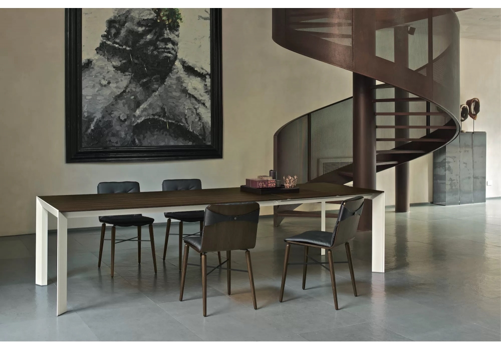Genio firmato da R&D Bontempi Casa è un tavolo allungabile con struttura in alluminio laccato con piano in cristallo o marmo, prolunghe in legno o marmo. Disponibile in diverse finiture e dimensioni.
