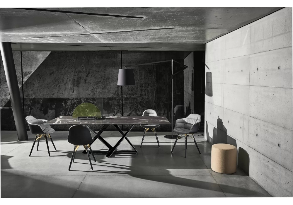 Millennium Marmo firmato da Pocci & Dondoli per Bontempi è un tavolo con piano in marmo e struttura in acciaio laccato. Sono disponibili diversi modelli e finiture.