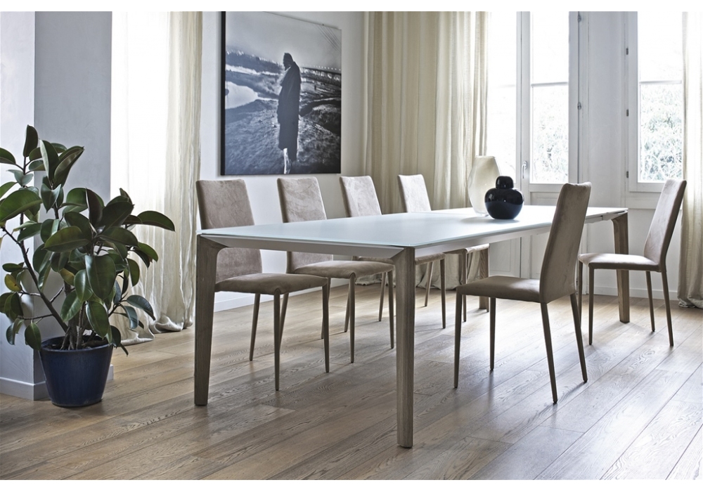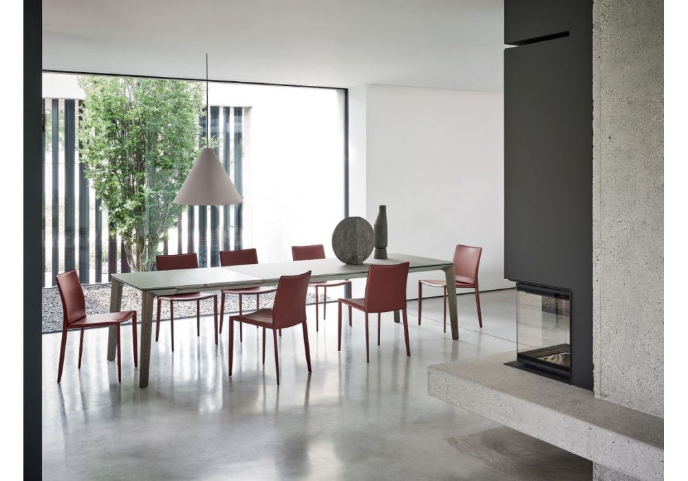 Versus firmato da Carlo Bimbi per Bontempi è un tavolo con struttura in acciaio laccato disponibile con piano in cristallo o marmo. Disponibile in diverse misure.