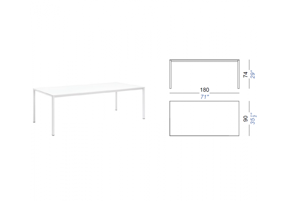 Frame firmato da Romano Marcato per Lapalma è un tavolo con struttura interamente in alluminio verniciato a polvere bianco in varie dimensioni. Piano in laminato HPL da 10 mm. in rovere bianco o sbiancato.
