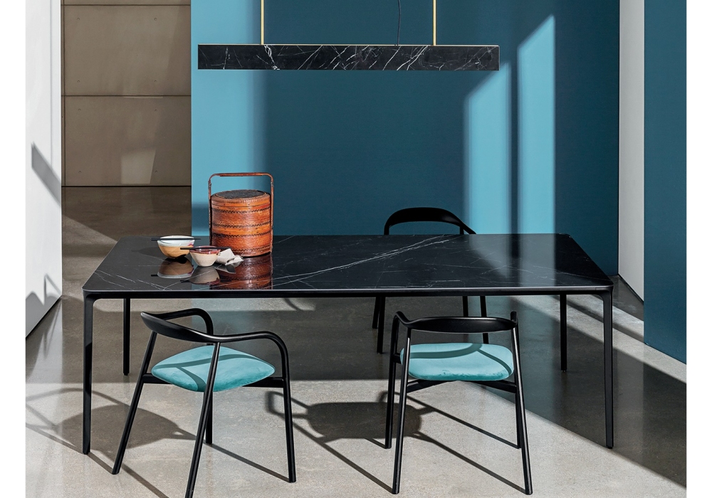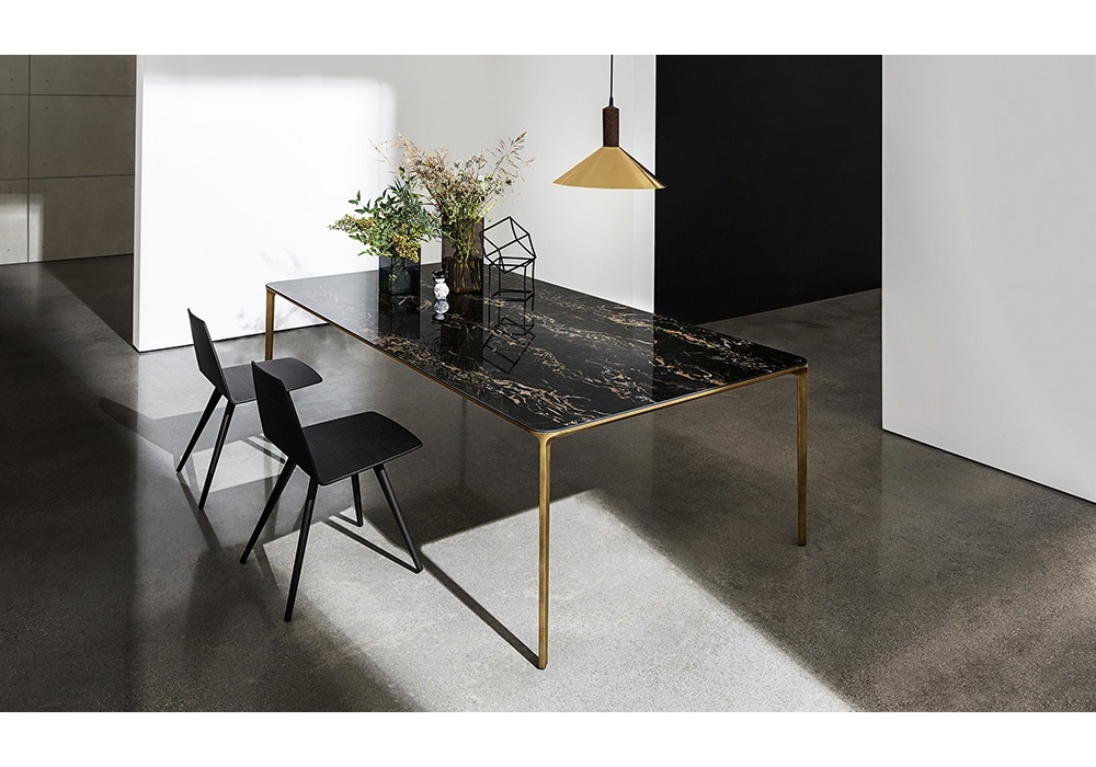Slim firmato da Matthias Demacker per Sovet è un tavolo rettangolare realizzato con struttura e gambe in metallo, top in vetro, ceramica, legno o HPL. Disponibile in diverse finiture e dimensioni.