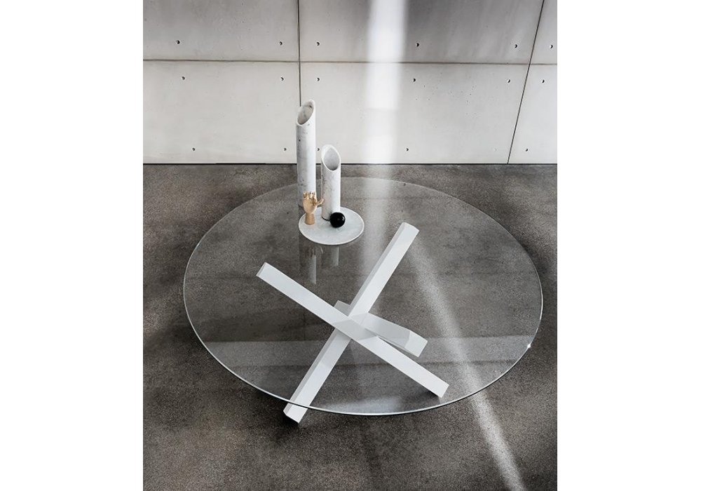 Aikido firmato da Studio Sovet per Sovet è un tavolo rotondo realizzato con base in metallo o in legno e top in vetro, ceramica o legno. Disponibile in diverse finiture e dimensioni.