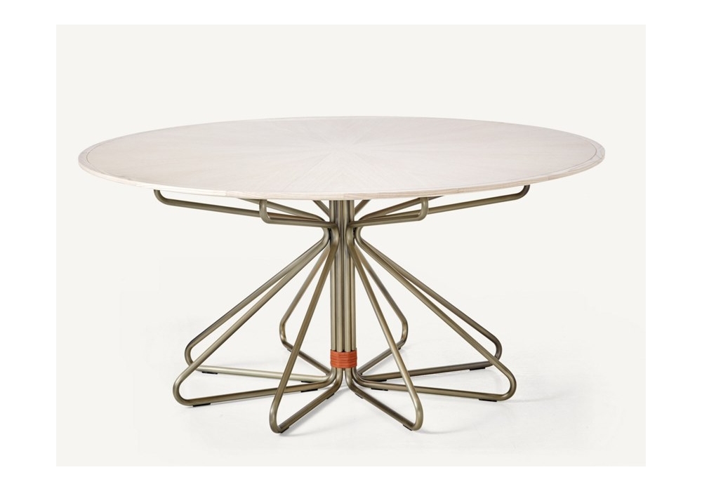 Geometric tavolo da pranzo disegnato da Craig Bassam per BssamFellows, il tavolo è composto da una struttura portante tubolare in acciaio intrecciata rivestito in nanoceramica che segue una geometria perfetta, piano in diverse finiture di legno.
