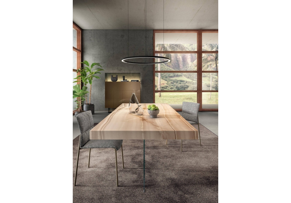 Air XGlass firmato da Daniele Lago per Lago è un tavolo realizzato con piano in vetro XGlass lucido o opaco e gambe in vetro extra-chiaro o fumé grigio. Disponibile in diverse finiture e dimensioni.