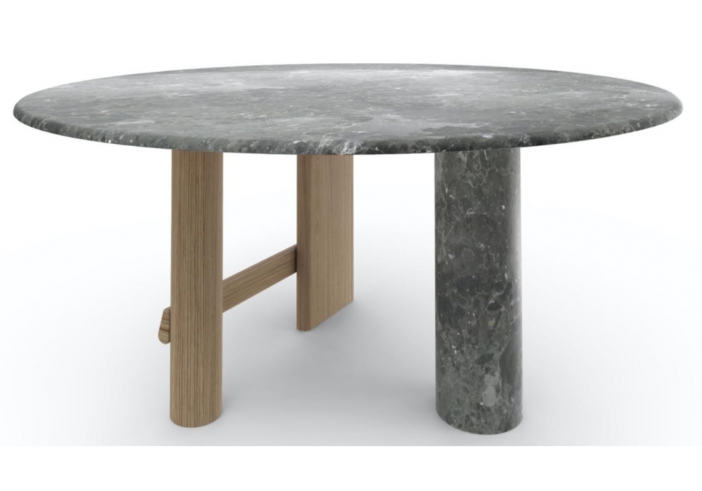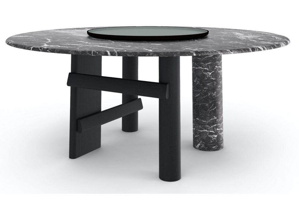 559 Sengu firmato da Patricia Urquiola per Cassina è un tavolo realizzato con piano e piede a colonna in marmo e gambe in legno. Disponibile in diverse finiture e dimensioni.