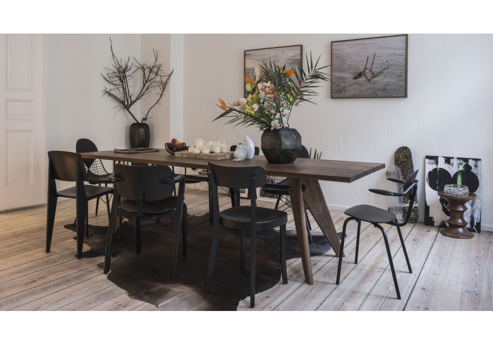 Table S.A.M. Bois firmato da Jean Prouvé per Vitra è un tavolo realizzato in legno massello rovere naturale con finitura a olio, rovere mordenzato scuro con finitura verniciata protettiva naturale o noce americano con finitura a olio. Gambe coordinate al piano del tavolo e traversa in tubolare di acciaio con finitura verniciata a polvere (liscia). Disponibile in diverse dimensioni.