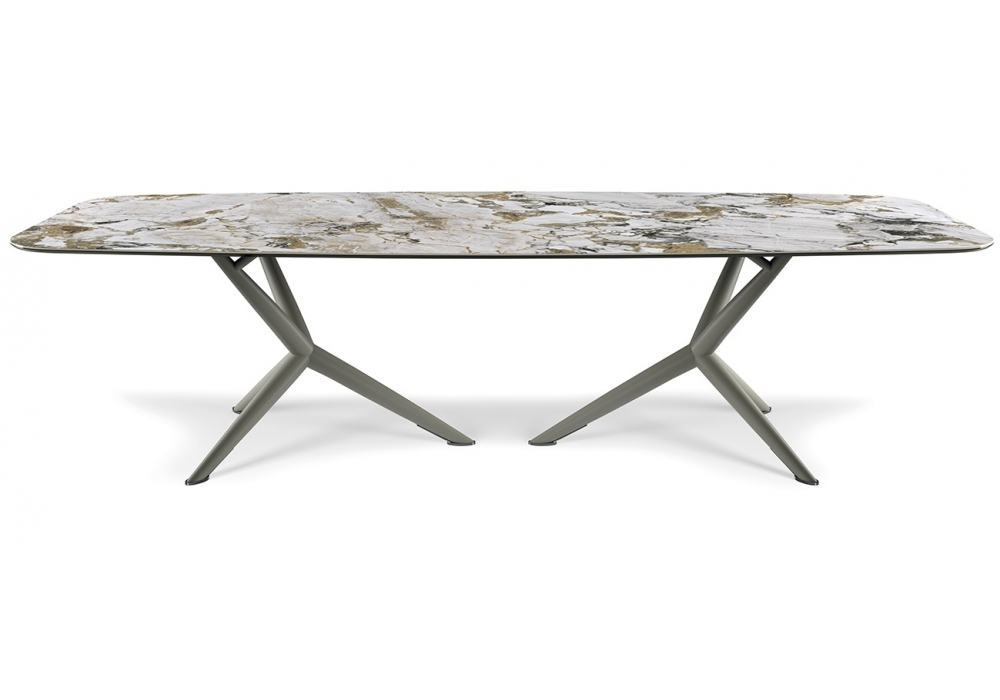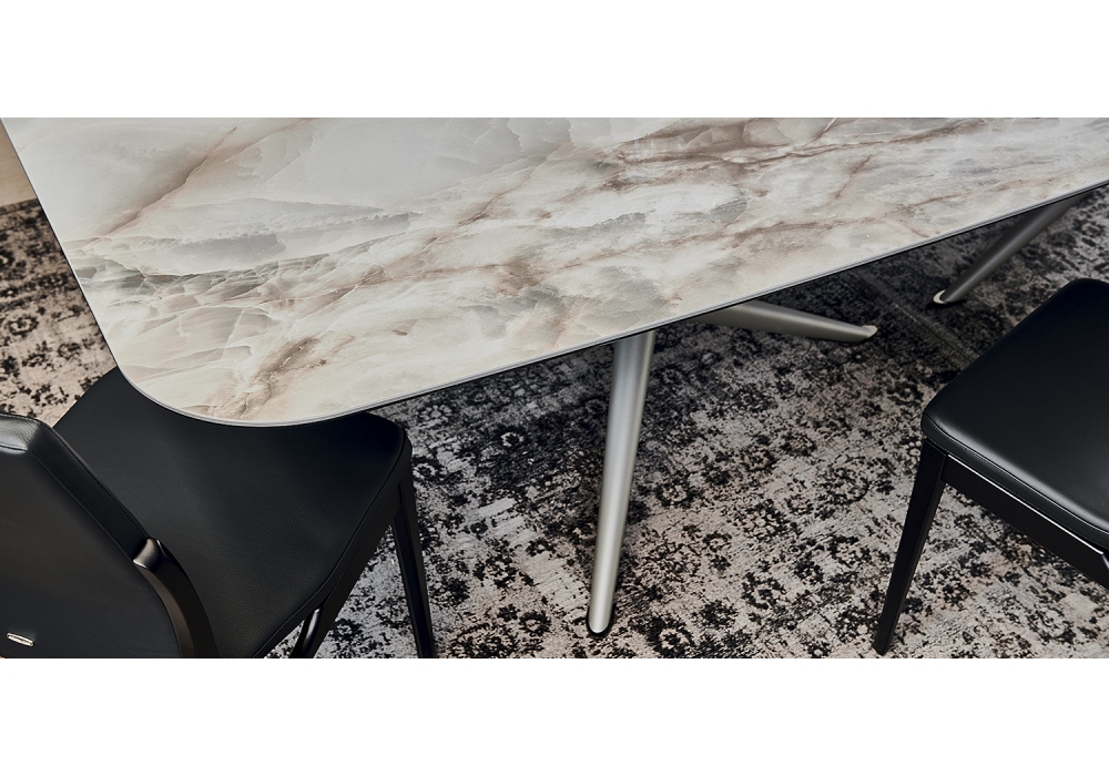 Atlantis Keramik disegnato da Paolo Cattelan per Cattelan Italia è un tavolo realizzato con base in acciaio laccato goffrato e piedini in cromo nero. Piano in ceramica Marmi in diversi colori. Disponibile in due dimensioni.