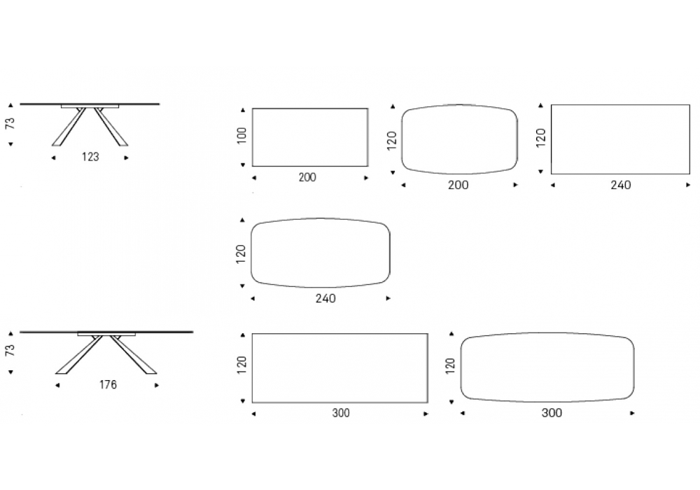 | Dimensioni | 200 x 100 x H 75 cm; 240 x 120 x H 75 cm; 300 x 120 x H 75 cm. |