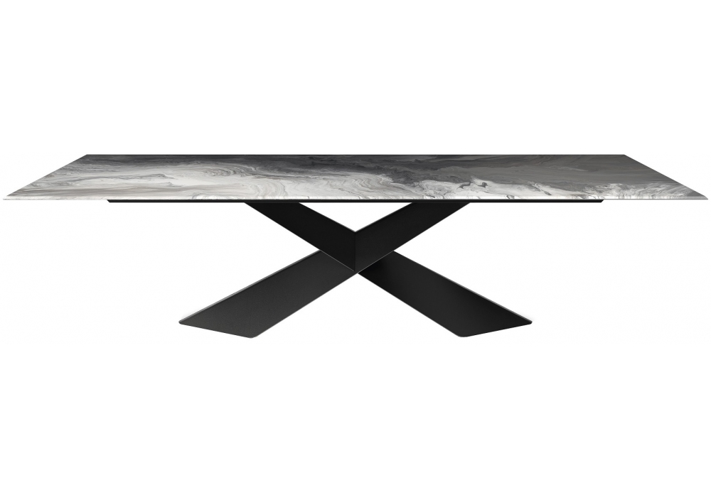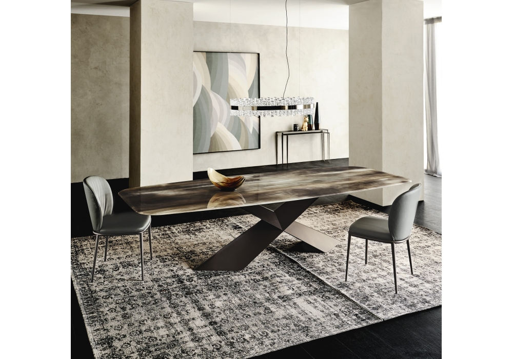 Tyron Crystalart disegnato da Paolo Cattelan per Cattelan Italia è un tavolo realizzato con base in acciaio laccato goffrato. Piano in vetro extrachiaro bisellato con stampa artistica decorativa in due diversi colori. Disponibile in diverse dimensioni.