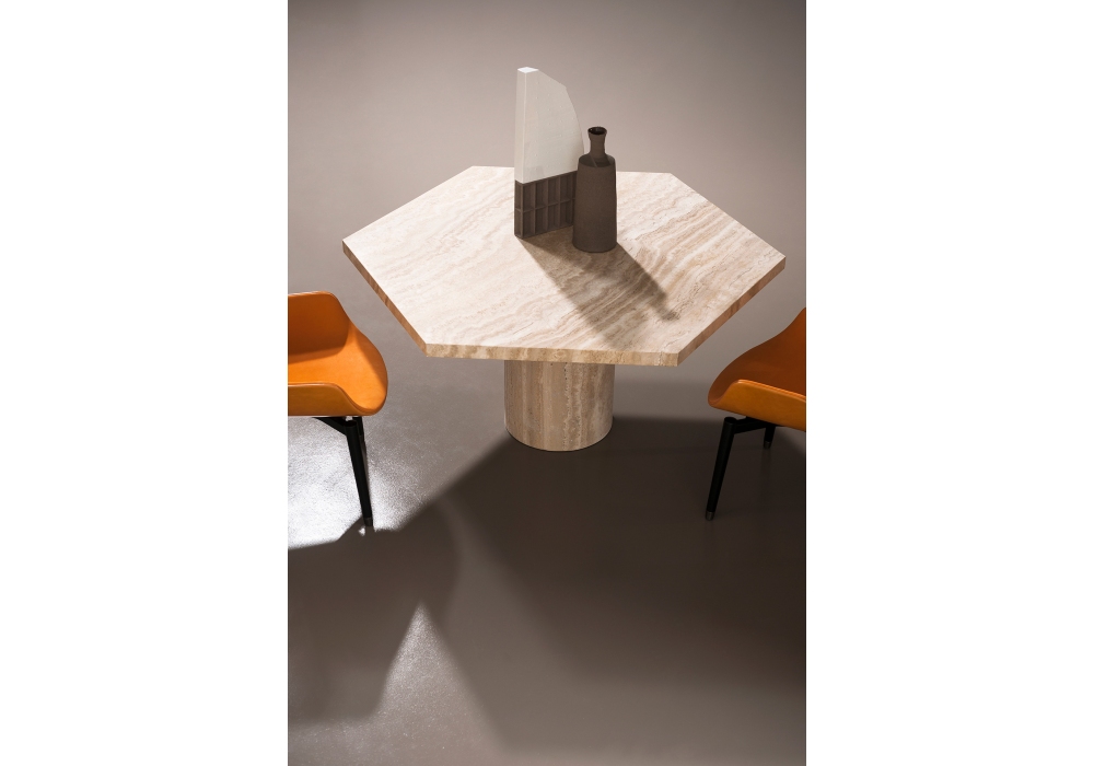 Jupiter Special Edition firmato da StudioPepe per Baxter è un tavolo realizzato con piano e base in marmo Travertino opaco. Piastra di collegamento in metallo nero opaco. Disponibile in diverse dimensioni.