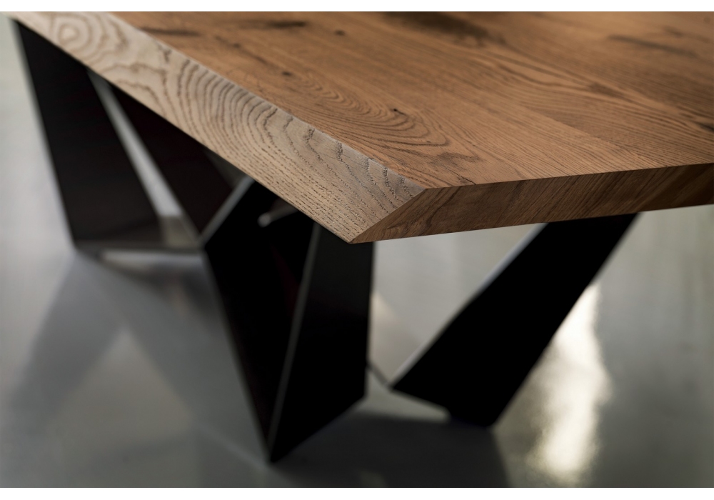 Skorpio Wood disegnato da Paolo Cattelan per Cattelan Italia è un tavolo realizzato con base in acciaio laccato goffrato. Piano in legno disponible nesguenti versioni: con bordi obliqui, con bordi irregolari in massello, con piano a botte e bordi bisellati oppure "Masterwood"con piano sagomato in legno realizzato con listelli, diversi tra loro, posizionati in diagonale (bordi obliqui e arrotondati).