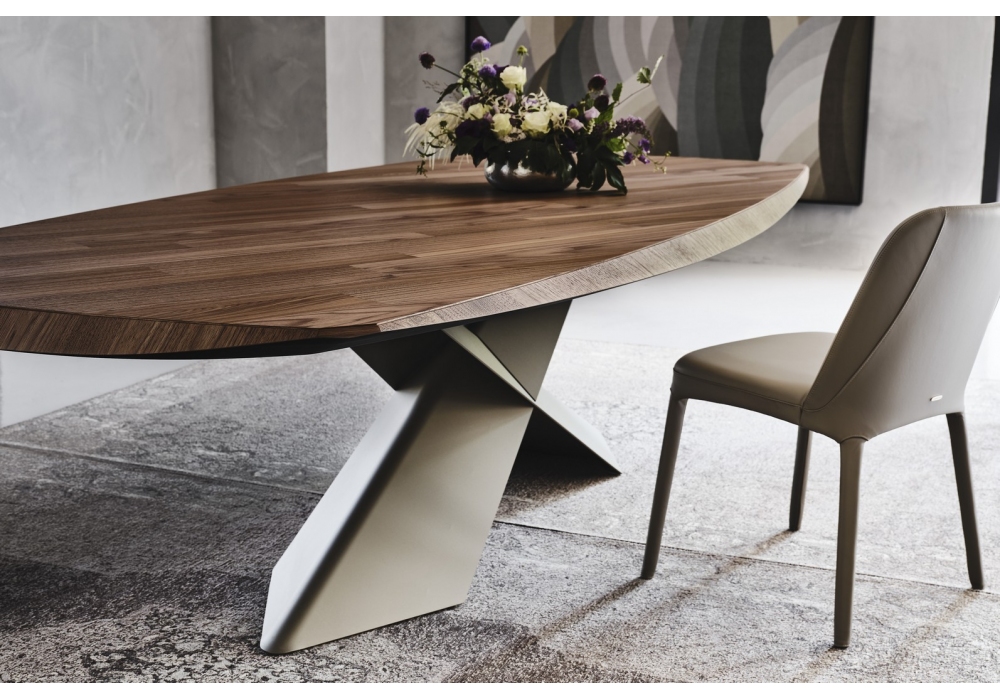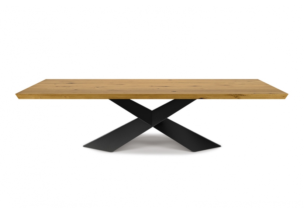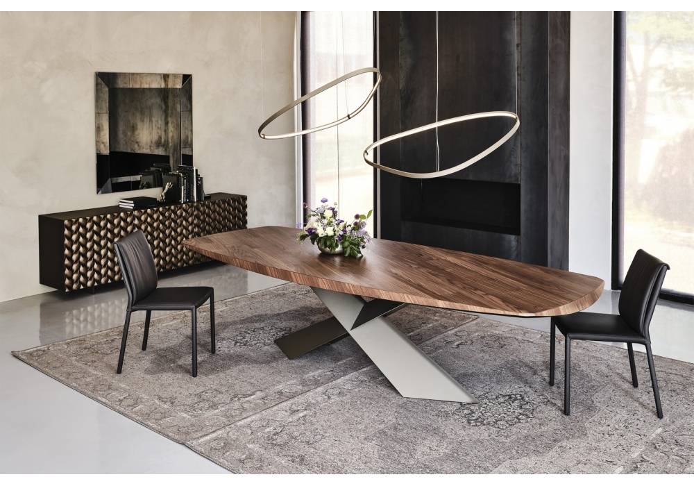 Tyron Wood disegnato da Paolo Cattelan per Cattelan Italia è un tavolo realizzato con base in acciaio laccato goffrato. Piano in legno disponible nesguenti versioni: con bordi obliqui, con bordi irregolari in massello, con piano a botte e bordi bisellati oppure "Masterwood"con piano sagomato in legno realizzato con listelli, diversi tra loro, posizionati in diagonale (bordi obliqui e arrotondati).
