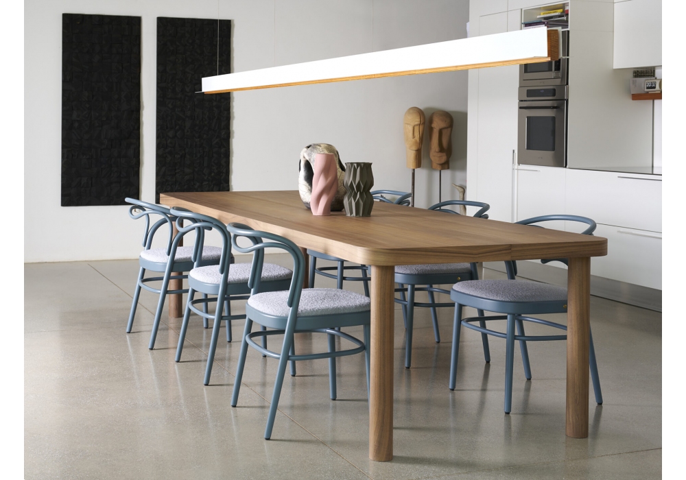 Säule firmato da Fabio Fantolino per Gebrüder Thonet Vienna è un tavolo con struttura in impiallacciato noce canaletto, gambe in massello noce canaletto e top in laminato lucido in diverse finiture. Disponibile in diverse dimensioni.