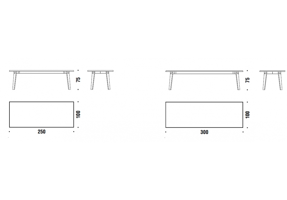 | Dimensioni | • 250 x 100 x H 75 cm; • 300 x 100 x H 75 cm. |