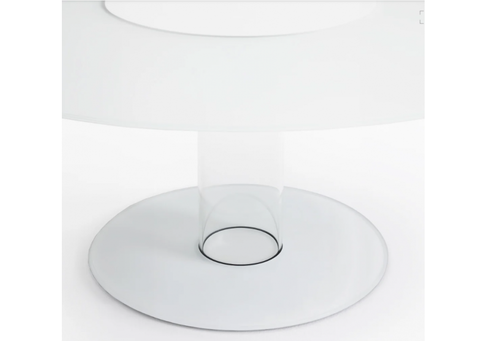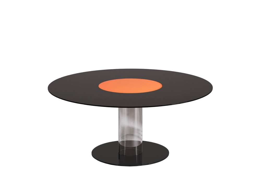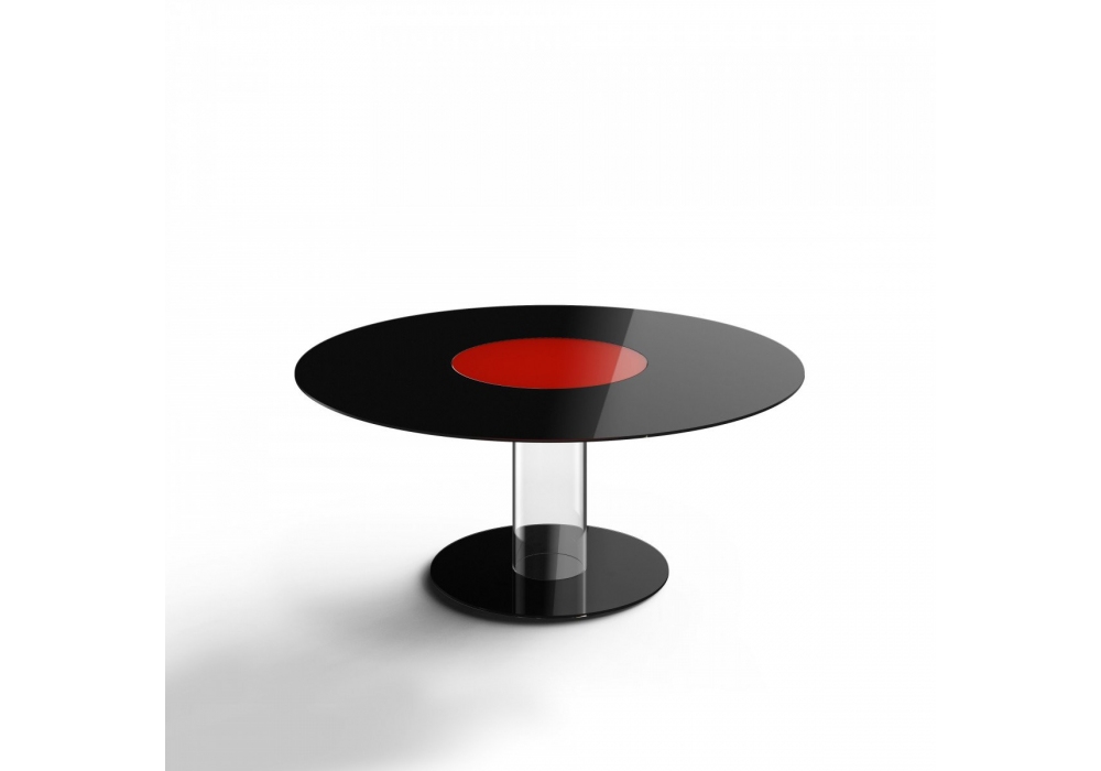 Lazy Hub firmato da Piero Lissoni per Glas Italia è un tavolo di forma rotonda con disco girevole servi vivande Ø 70 cm, dal movimento, incassato ed allineato al centro del piano. L'anello esterno del piano e il piede del tavolo sono in cristallo temperato 12 mm., laccato lucido o opaco, mentre la finitura interna (disco girevole) è disponibile in diverse finiture lucide o opache.