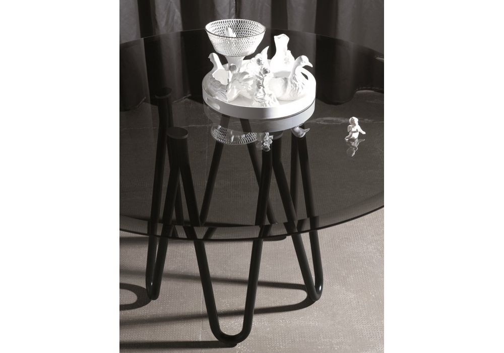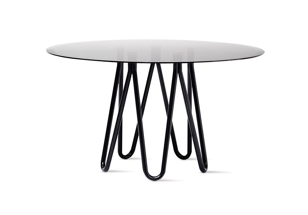 Meduse firmato da GamFratesi per Casamania è un tavolo realizzato con gambe in metallo verniciato e piano in marmo o in vetro fumé.