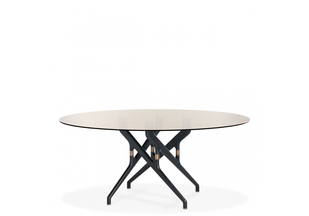 Torso firmato da Gianluigi Landoni per Potocco è un tavolo strutturato dalla combinazione di massello di frassino o noce canaletto in differenti finiture con decorazioni in ottone brunito. Il piano è di forma circolare disponibile in differenti finiture di legno o in vetro temperato. Torso è disponibile in differenti dimensioni.