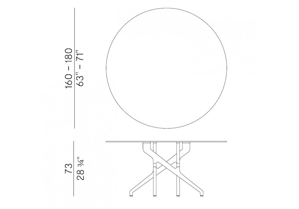 | Dimensioni | Ø160 x H 73 cm; Ø 180 x H 73 cm. |