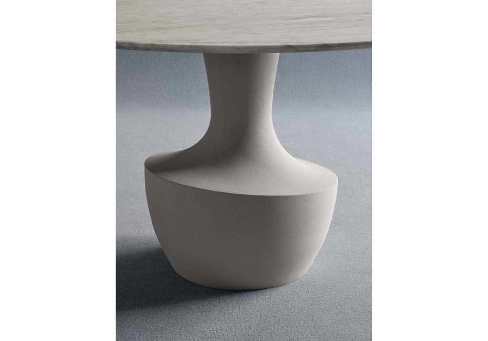 Anfora firmato da Alexander Lorenz per Potocco è un tavolo con base in quarzo resinato in differenti cromie. Il piano è di forma circolare ed è disponibile in vetro o marmo in diverse finiture ed in due dimensioni.