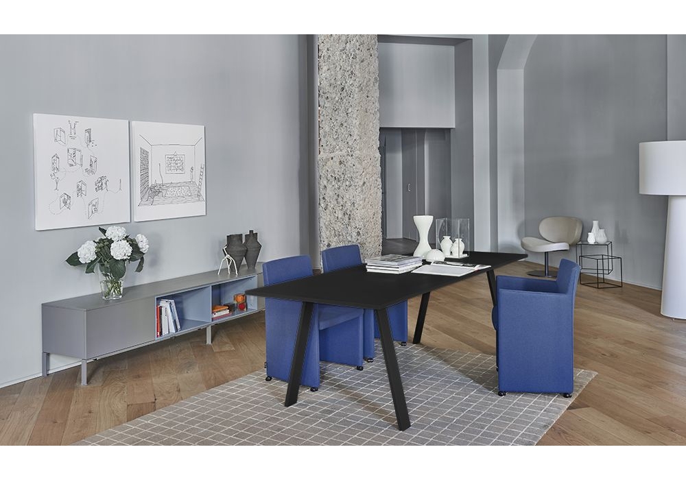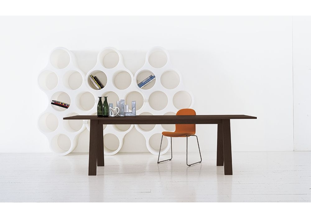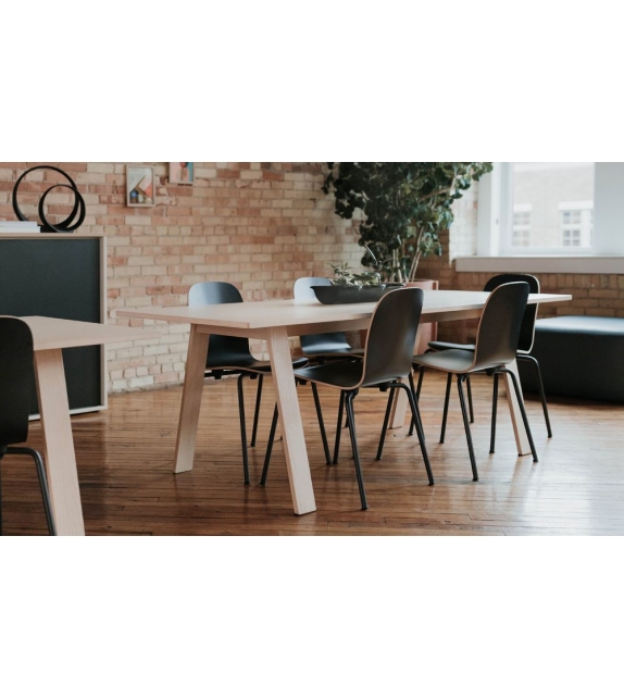 Bac firmato da Jasper Morrison per Cappellini è un tavolo rettangolare realizzato con base in massello di frassino e piano in legno impiallacciato. Disponibile in diverse finiture.