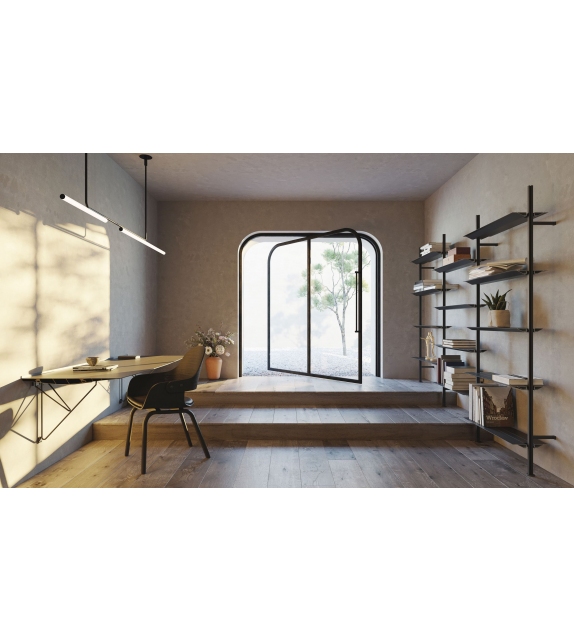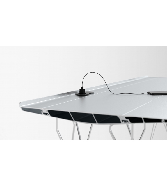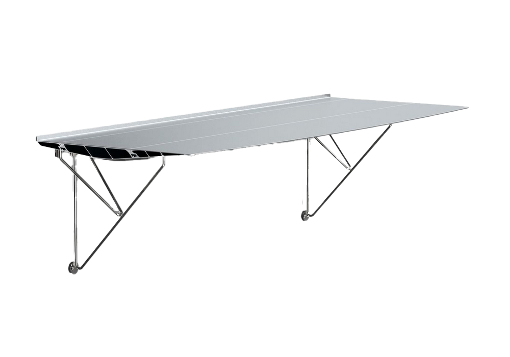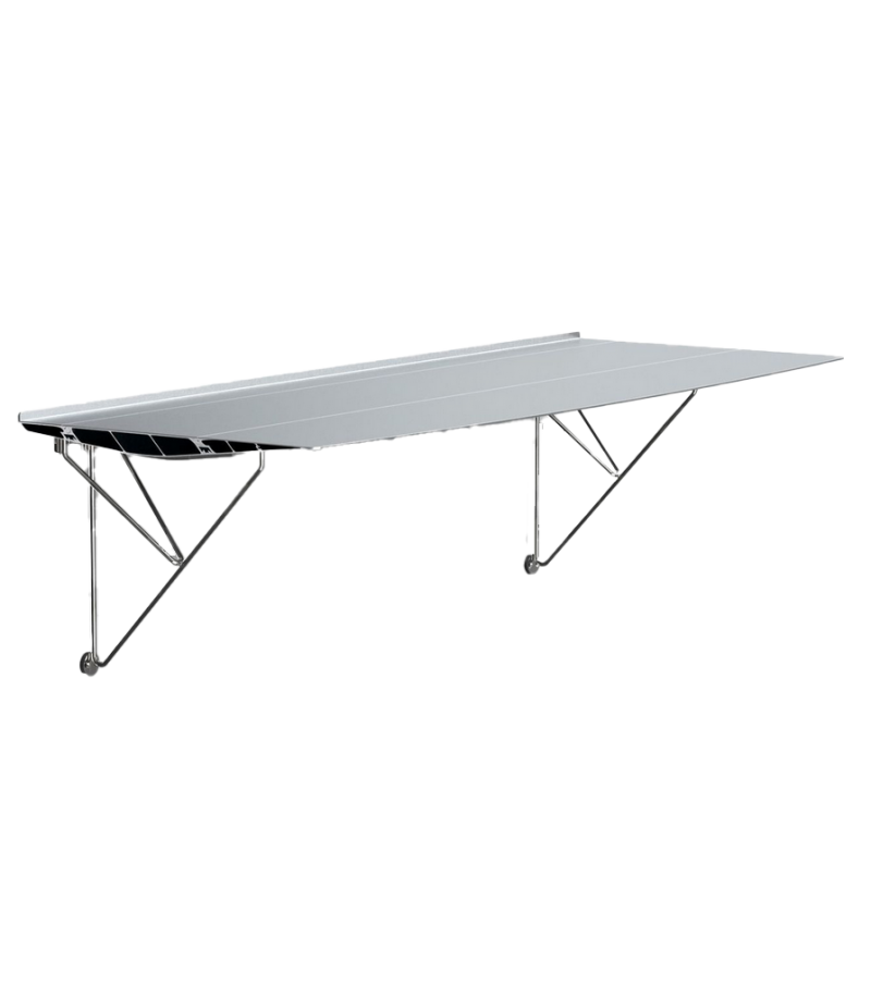 Tavolo B Desk firmato da Konstantin Grcic per BD Barcelona è un tavolo a parete in estruso di alluminio con bordo arrotondato. Disponibile in diverse misure.
