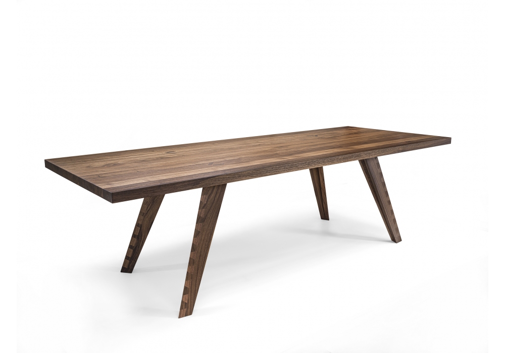 Dovetail Table firmato da Mario Bellini e Raffaele Cipolletta per Riva 1920 è un tavolo realizzato interamente in legno massello, top a liste incollate e gamba con particolare lavorazione a coda di rondine.
