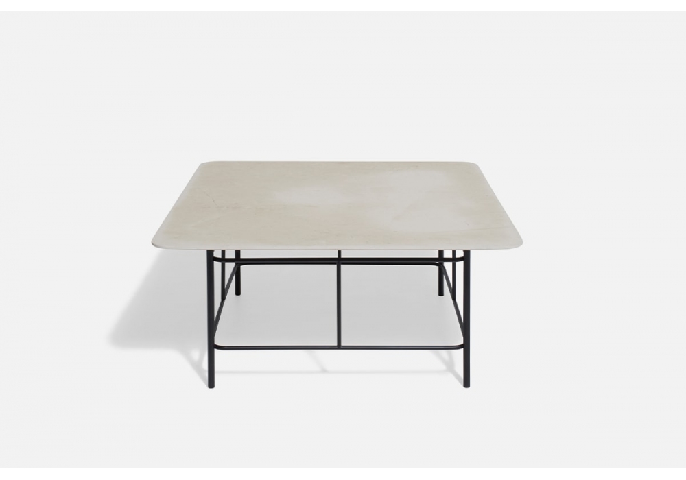 Andon firmato da Nendo per DePadova è un tavolo basso con struttura in acciaio inox verniciato nero opaco. Disponibile con piano in pietra o in marmo in differenti finiture.