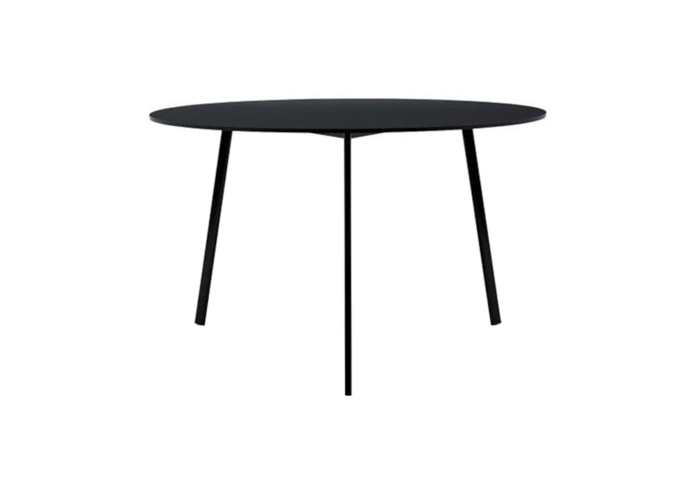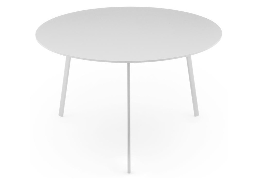 Striped firmato da Ronan & Erwan Bouroullec per Magis è un tavolo rotondo con struttura in tuvo d'acciaio trattato cataforesi e verniciato poliestere in varie finiture. Piano in HPL in tinta. Adatto anche per esterni.