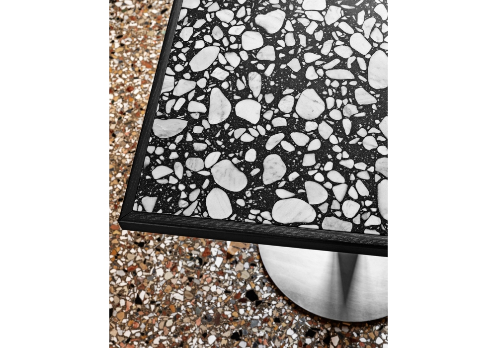 Briscola firmato da Miniforms Lab è un tavolo con piano in ceramica, marmo o laccato, disponibile con o senza cornice in legno. Base in metallo zincato, nero o verniciato nella stessa finitura laccata del piano. Disponibile in diverse finiture e nella forma rotonda o quadrata.