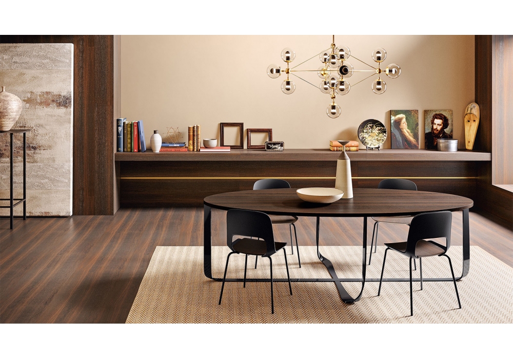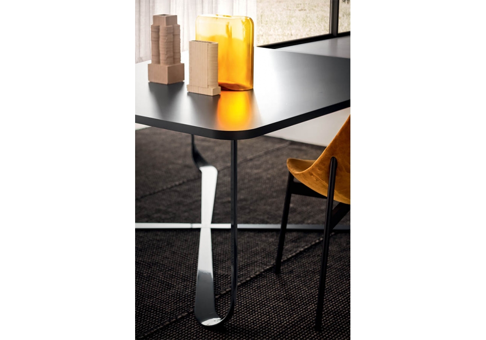 Confluence firmato da Xavier Lust per Pianca è un tavolo realizzato con base in metallo titanio oppure verniciato a polvere epossidica lucida. Piano realizzato con pannello di particelle di legno impiallacciato e bordato in Essenza o in laminato Fenix®. Disponibile in diverse finiture e dimensioni.