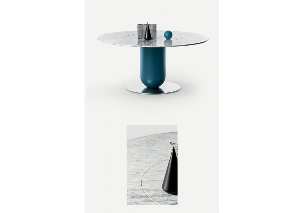 Ettore firmato da Calvi Brambilla per Pianca è un tavolo realizzato con base in acciaio, colonna centrale in poliuretano rigido laccato opaco e piano in marmo o legno Essenza o laccato opaco. Lazy Susy opzionale. Disponibile in diverse finiture e dimensioni.