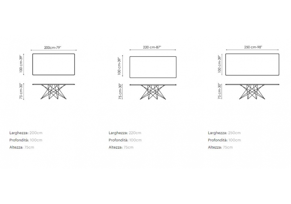 | Dimensioni | 200 x 108 x H 75 cm; 220 x 100 x H 75 cm.; 250 x 112 x H 75 cm. |