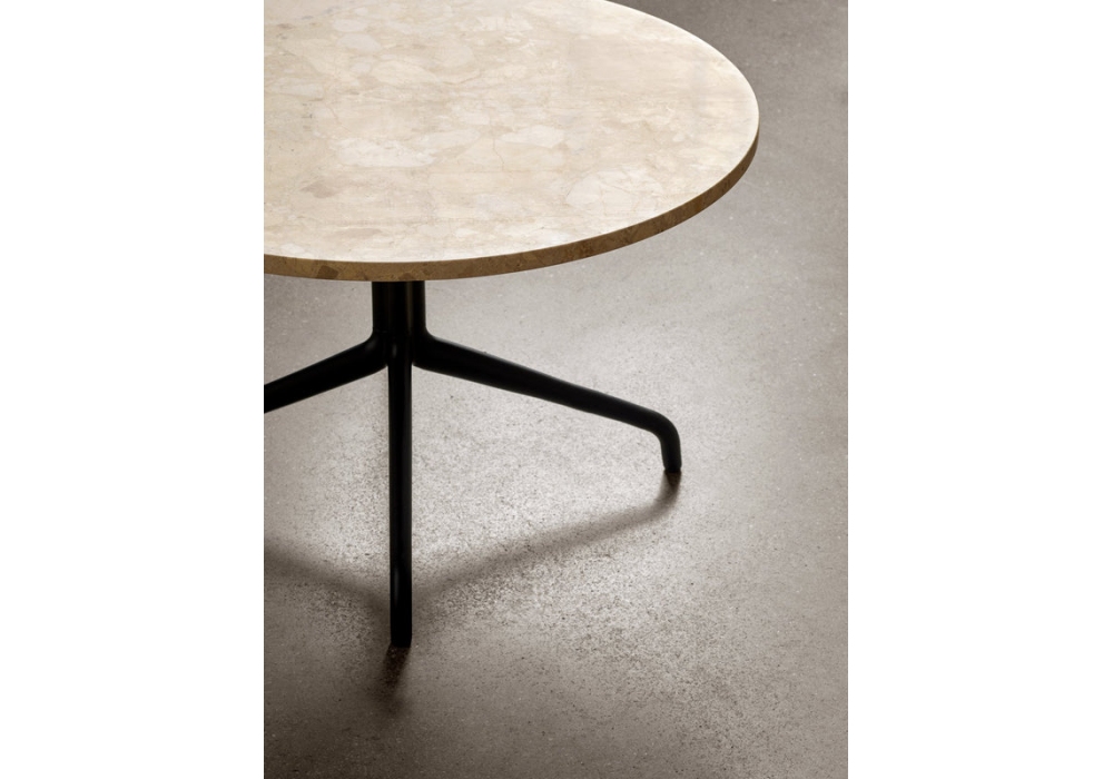 Harbour Star firmato da Norm Architects per Menu è un tavolo rotondo con base in alluminio e acciaio verniciato a polvere nero, piano in pietra Kunis Breccia, Estremoz marmo, rovere tinto nero o linoleum. Disponibile in diverse dimensioni.