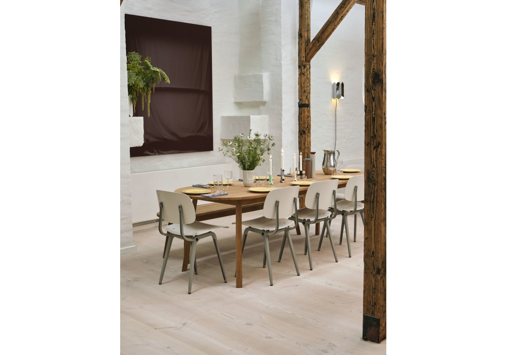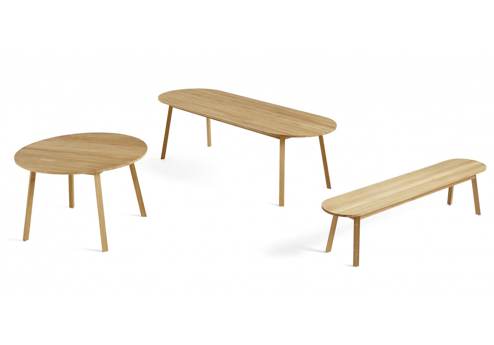 Triangle Leg firmato da Simon Jones per Hay è un tavolo realizzato in massello di rovere con barre di supporto sono montate sotto il piano del tavolo. Disponibile in differenti finiture e dimensioni.