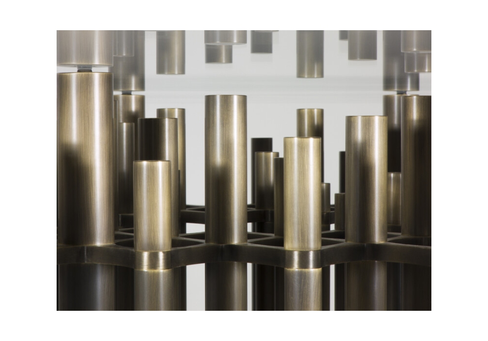 Tuileries firmato da Ferruccio Laviani per Emmemobili è un tavolo caratterizzato da elementi verticali di diverse misure e lunghezze. Base in ottone e piano in vetro (sp. mm. 15). Disponibile in differenti dimensioni.