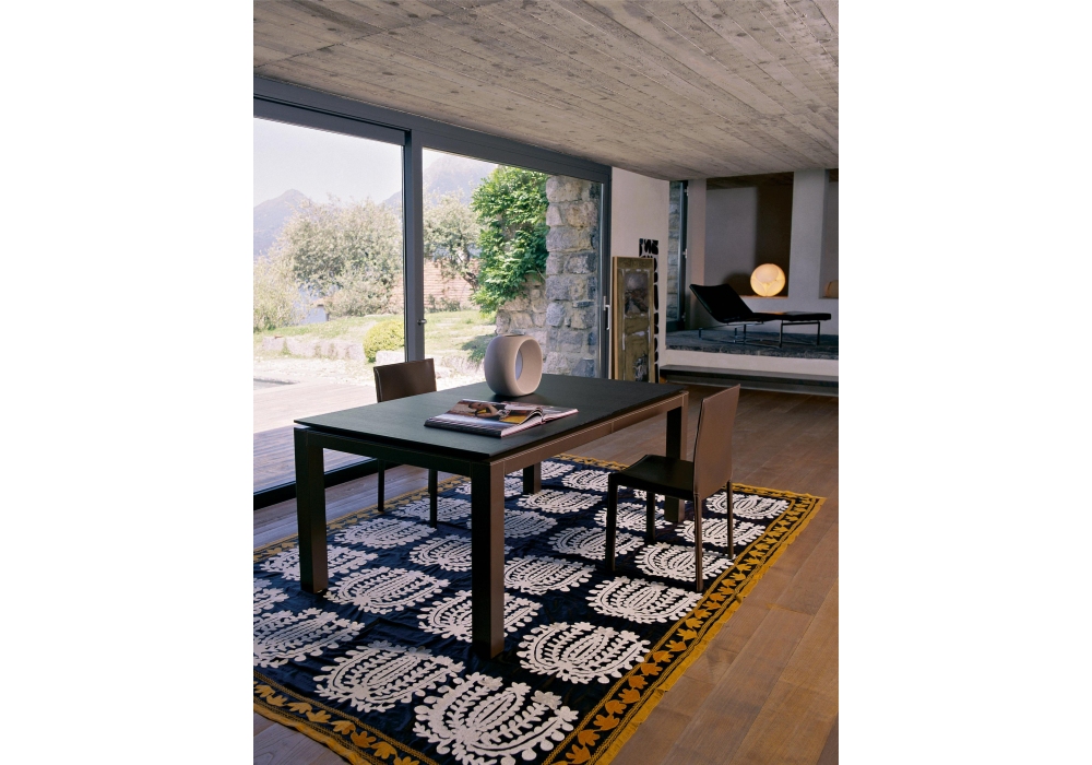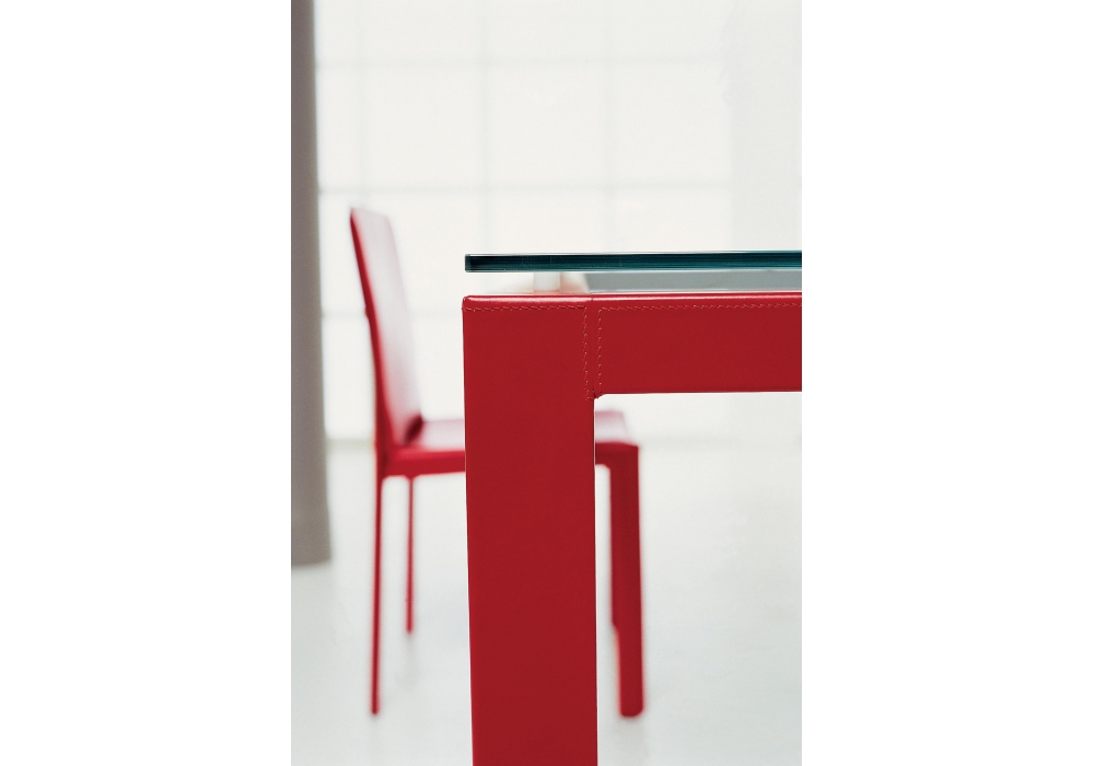 Abaco firmato da Franco Bizzozero per Enrico Pellizzoni è un tavolo con struttura in tubolare d'acciaio, completamente rivestita in cuoio o verniciata a polveri epossidiche. Disponibile in diverse finiture e dimensioni.