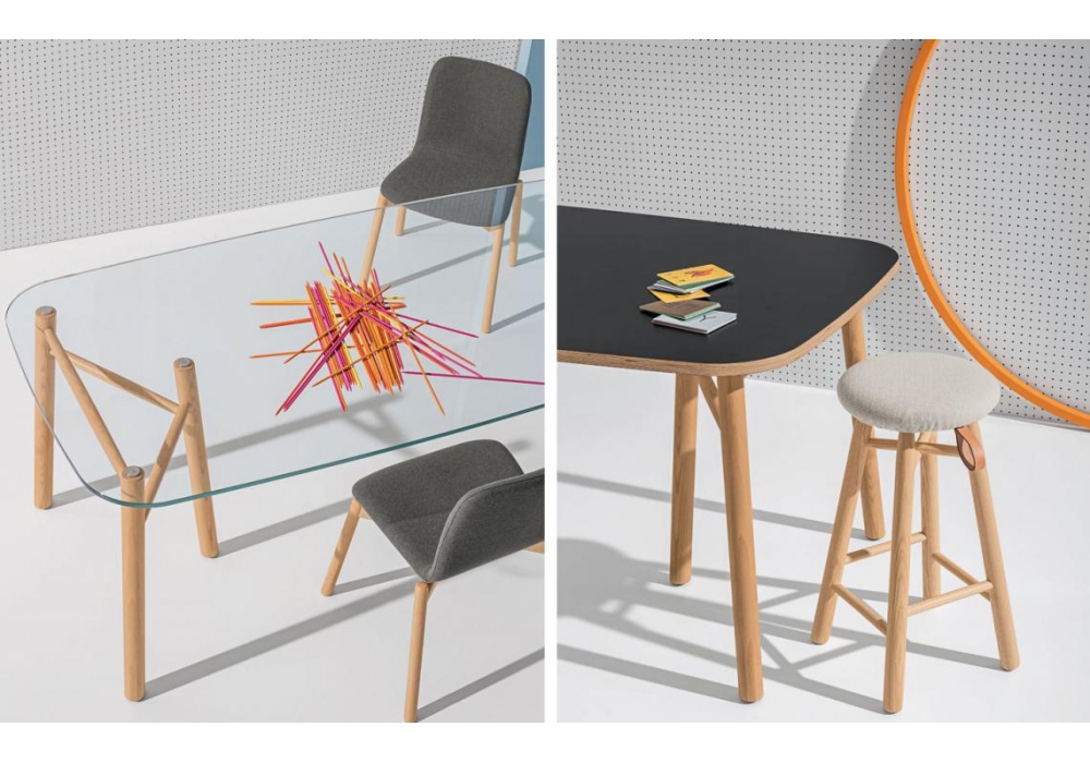 Sakti firmato da Marialaura Rossiello Irvine e Maddalena Casadei per Discipline è un tavolo con gambe in frassino naturale. Piano in vetro extrachiaro trasparente temperato oppure in multistrato di betulla impiallacciato rovere o laminato bianco o nero.