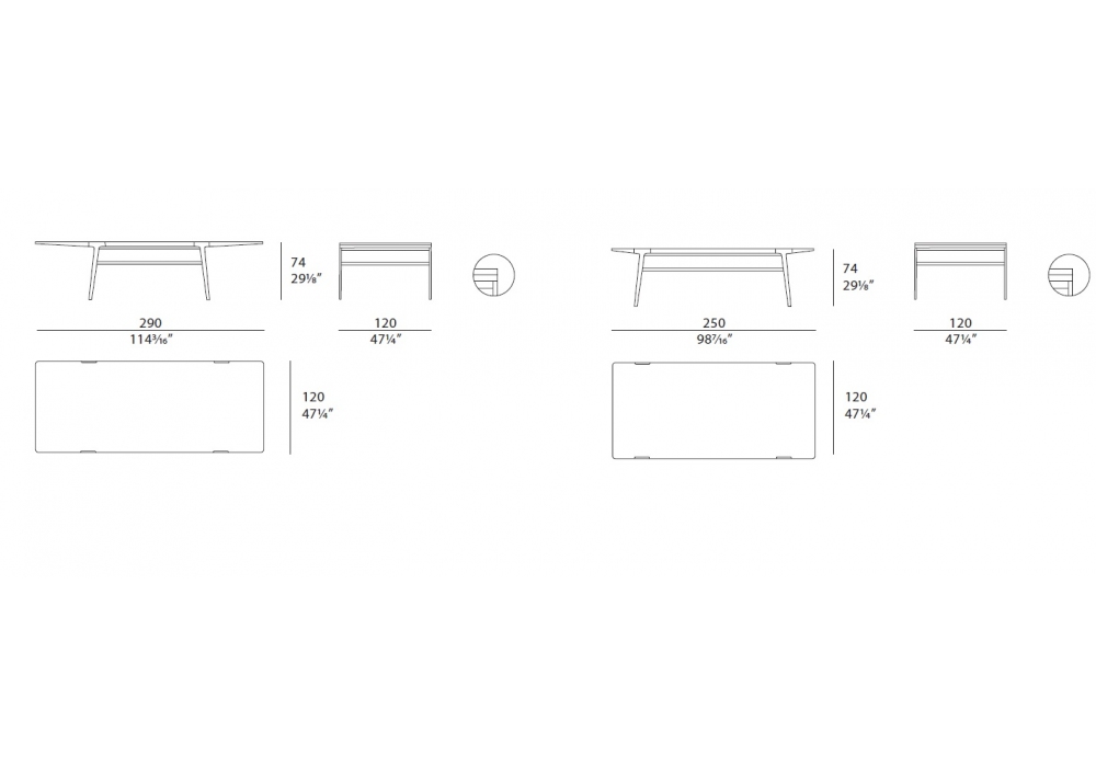 | Dimensioni | 290 x 120 x H 74 cm; 250 x 120 x H 74 cm; |