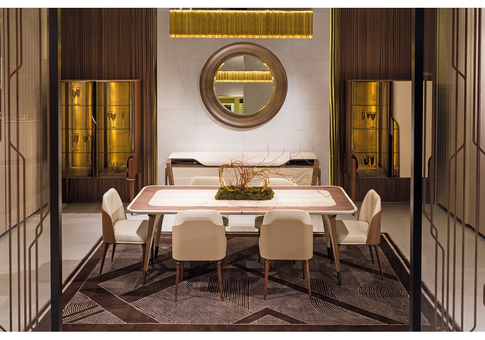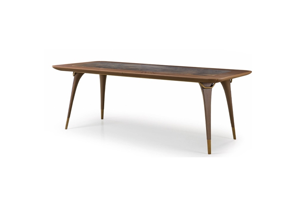 Melting Light firmato da Andrea Bonini per Turri è un tavolo con struttura in legno massello e MDF con impiallacciatura in noce. Piano impiallacciato noce o con inserto in marmo. Parti metalliche in finitura oro o bronzo spazzolato. Il bordo del tavolo è rivestito in differenti pelli.